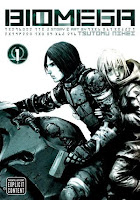 It was the gorgeous cover of the first volume of Biomega that caught my eye and made me pick it up for a closer look. I didn’t recognize the title or the creator, Tsutomu Nihei. I ended up putting the book back on the shelf, but for the next few weeks my mind kept wandering back to it. And then I discovered that one of the plot elements was at least vaguely connected to Mars and any remaining self-restraint I had collapsed (I have a thing for Mars). I soon found a copy of Biomega, Volume 1 in my possession. I was very pleased with my decision when one of the guys at my favorite comic store was elated by my choice. Biomega was actually one of the store’s featured selections at the time, he liked it so much. So, satisfied with my purchase, I happily took it home. And then promptly finished reading it that night.
