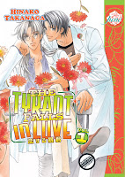The Tyrant Falls in Love, Volumes 1-2 by Hinako Takanaga. The Tyrant Falls in Love is a spin-off/continuation of Takanaga’s debut series Challengers. It is however, much more explicit than the first series. The tone, too, is much more serious, although some of the humor from the original series remains. The Tyrant Falls in Love follows two side characters from Challengers but happily Tomoe and Kurokawa have a brief guest appearance, too. Tatsumi is still an incredibly violent homophobe and Morinaga reveals just how much of a manipulative bastard he can be (sad, but true.) Morinaga’s character is further developed in volume two when we get to learn a bit more about his family and past.