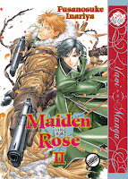 Maiden Rose, Volume 2 by Fusanosuke Inariya. I didn’t find the second volume to be quite as strong as the first, but it is still very good. More characters are introduced, but personally I would have liked to see those already established further developed. However, I am interested in seeing how Inariya will bring the new plotlines together. Although there is less graphic sex than in the first volume, the relationship between Taki and Klaus continues to be a very intense and complicated one. I have no idea how things are going to turn out for them and the war makes their relationship even more difficult. I hope we get to see more of this series (which I believe is currently up to four volumes in Japan) available in English.